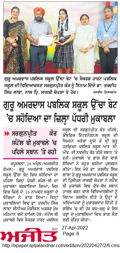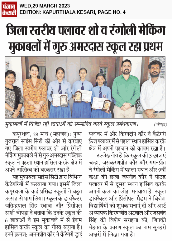 WINNER OF DISTRICT LEVEL SAHODAYA INTER-SCHOOL